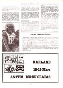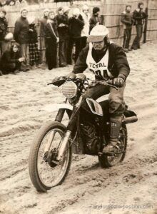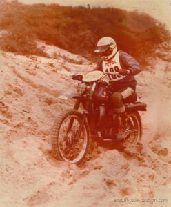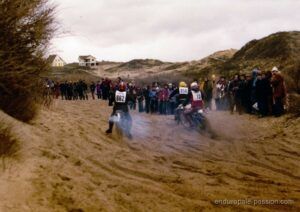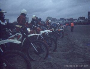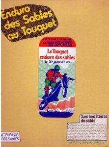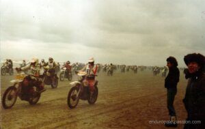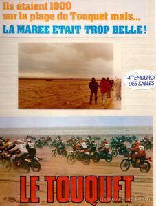 « Les souvenirs peuvent nous jouer des tours parfois, j ai participé à l enduro du Touquet en 1978 en catégorie débutant sous le numéro ‘559‘ sur un DTMX 125 qui respirais juste un petit peu mieux que d’origine. Dans mes souvenirs également nous étions 1023 sur une seule ligne de départ et 883 concurrents à l’arrivée de la seule première manche car la deuxième a été annulée et j’ai été classé 219 eme. Bon vent à l enduropale que nous appelions l’ enduro des sable du Touquet à l époque.