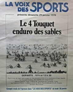 En 1978 la seconde manche de cette 4eme édition fût annulée au bout du premier tour à cause de la marée, mais aussi d’un cafouillage entre Thierry Sabine et le moto club du nord qui était co-organisateur à l’époque.