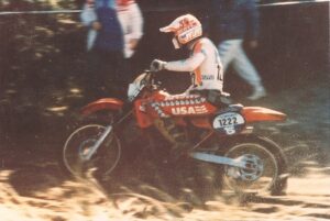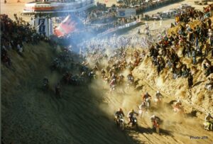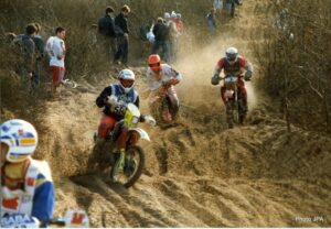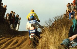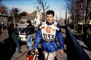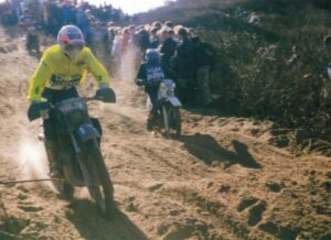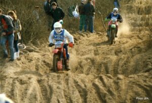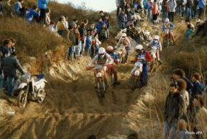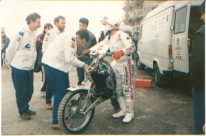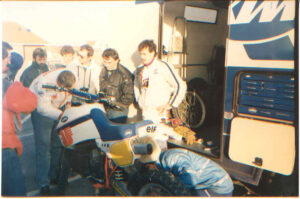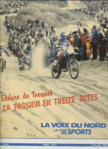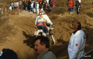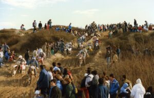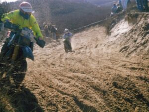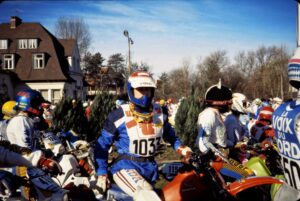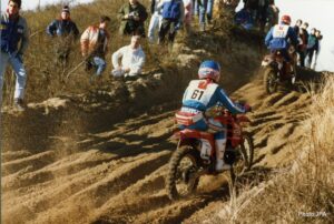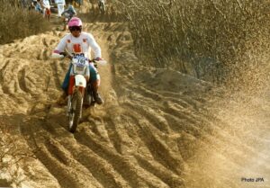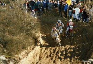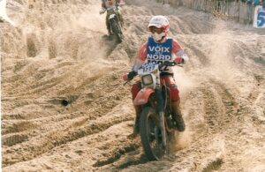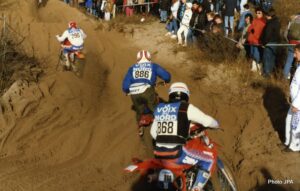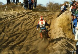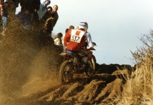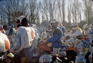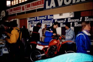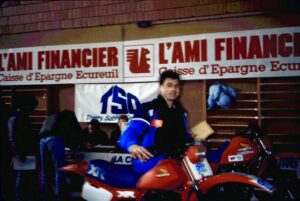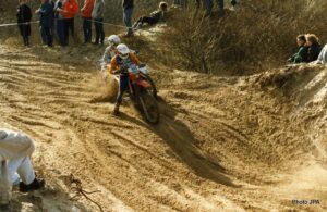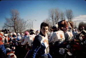 numéro 1222 : 1ere participation de Nicolas PATAT en 125 CR. Il témoigne : Apprentissage pur sans préparation (physique ni moto d’ailleurs..). Je faisais un plein par tour et à chaque tour, j’étais ravi d’en avoir fait un. J’ai fini par en faire 5 je crois, aux anges !!!!! J’avais fait connaissance dans l’année d’un certain Paul Philippe VANDESOMPELE qui m’y a poussé avec son père (malheureusement disparu depuis). Famille très sympa. On est toujours en contact d’ailleurs avec mon pôte PILOU…